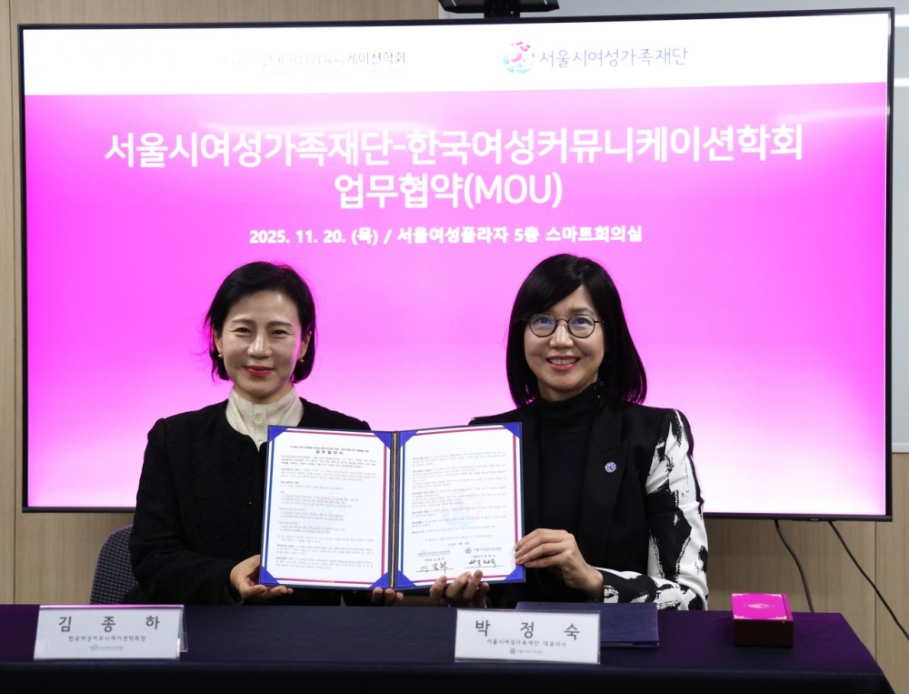 서울시여성가족재단(대표이사 박정숙)은 지난 20일 서울여성플라자에서 한국여성커뮤니케이션학회와 디지털 시대 양성평등한 미디어 환경 조성과 여성·가족 정책 연구 협력 강화를 위한 업무협약을 체결했다.