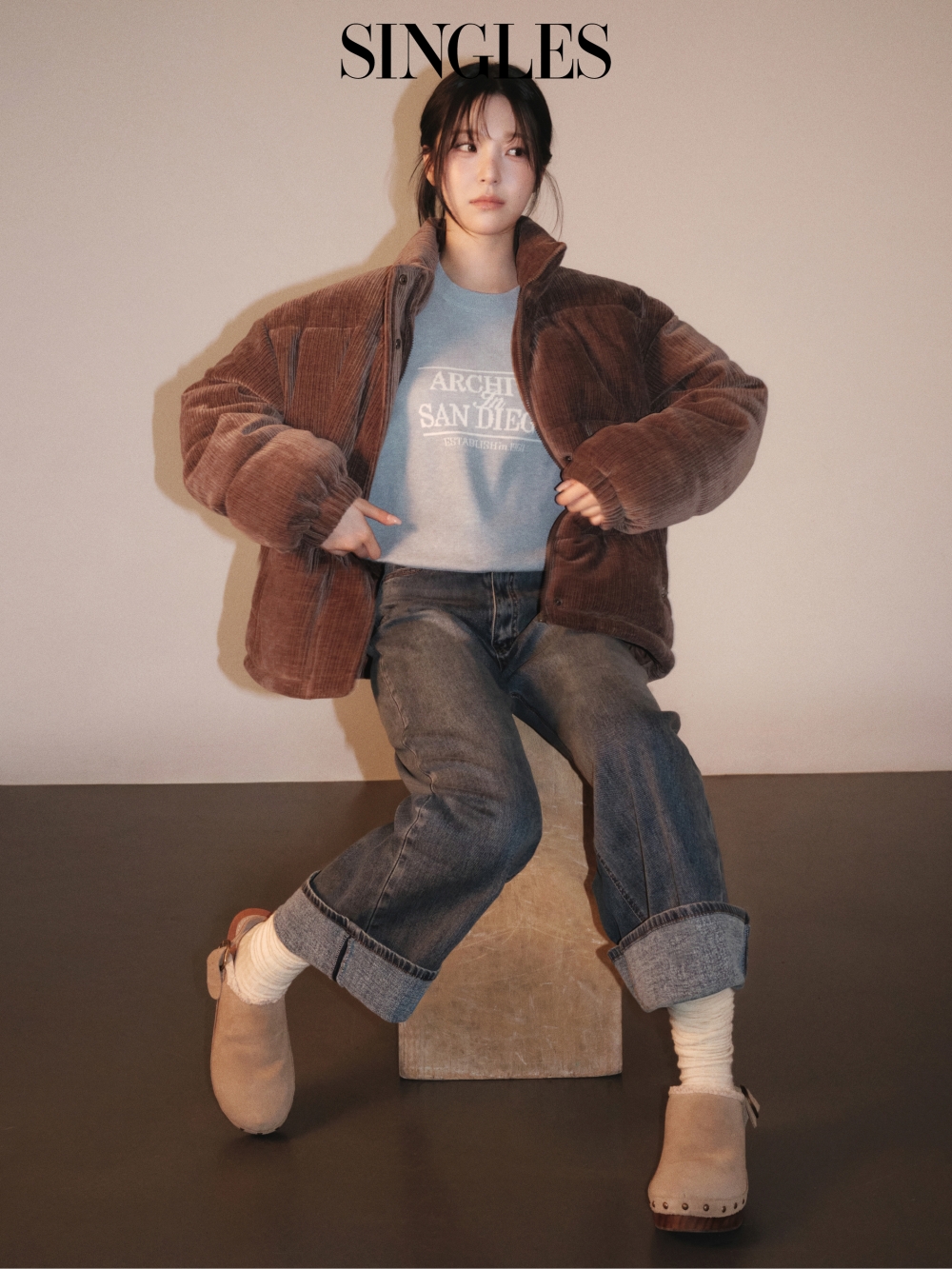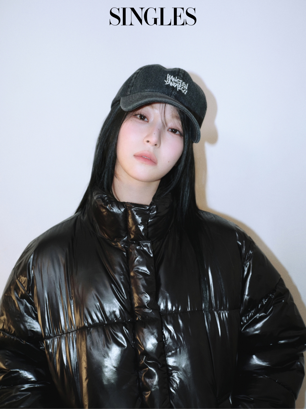 <싱글즈> 12월호 화보 속 백지헌은 글로시 블랙, 다크브라운, 라벤더 등 다양한 컬러의 포레스트 패딩을 스타일리시하게 소화하며, 가볍고 시크하면서도 따뜻한 겨울 무드를 완성했다.