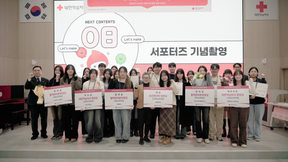 대한적십자사 혈액관리본부는 11월 29일 서울적십자병원 별관 대강당에서 ‘2025년 헌혈서포터즈(10기) 해단식 및 시상식’을 개최하였다.