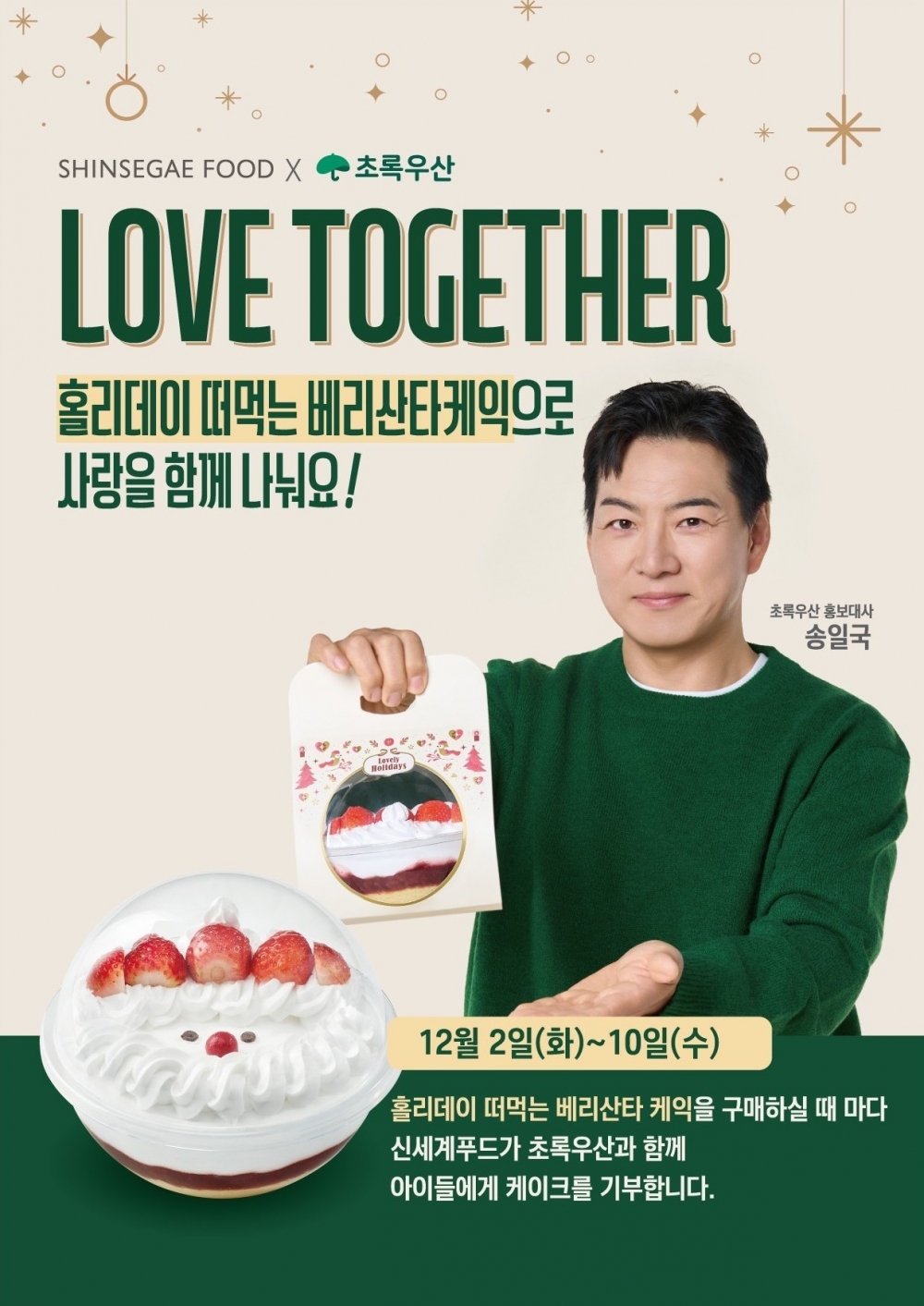 ‘Love Together’는 초록우산과 신세계푸드가 공동 기획한 연말 기부 캠페인으로, 고객이 케이크를 구매하면 동일한 케이크가 아동에게도 전달되는 착한 소비형 사회공헌 프로젝트다.