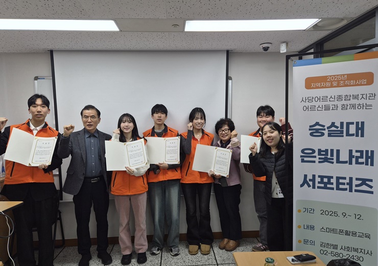 한편, 사당어르신종합복지관은 숭실대학교 은빛나래 서포터즈와 어르신이 상호 소통하고 함께 성장할 수 있는 세대통합 활동을 지속적으로 운영할 계획이다.