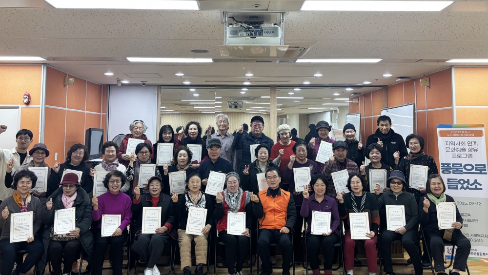 12월 12일(금) 사회복지법인 따뜻한동행 사당어르신종합복지관(관장 전재현)에서는 2025년 지역사회 연계 어르신 문화예술 향유 프로그램 '풍물으로 들었소' 수료식 및 평가회를 진행하였다.
