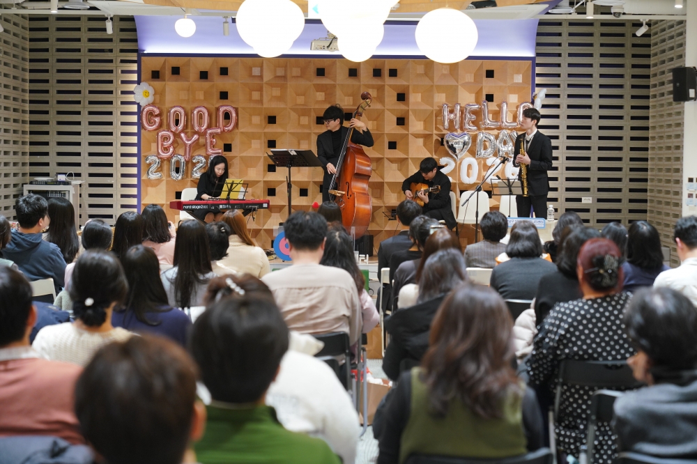 성과공유회 1부는 4인조 재즈밴드 ‘쁘띠팔레’의 축하공연을 시작으로 센터 주요 사업 성과와 2026년 사업 추진 방향을 설명하고 1년간 활동한 홍보서포터즈에게 감사함을 전하고, 센터에서 진행한 콘텐츠 공모전 우수상 시상 및 최우수작 발표와 시상이 이어졌다. 소모임 활동 전시 및 체험을 진행하여 참여자 간의 자연스러운 교류 활동을 진행하였고, 2부는 레크레이션과 음악밴드 소모임 ‘STAY.G STAGE’의 특별공연으로 성과공유회 행사를 마무리했다.