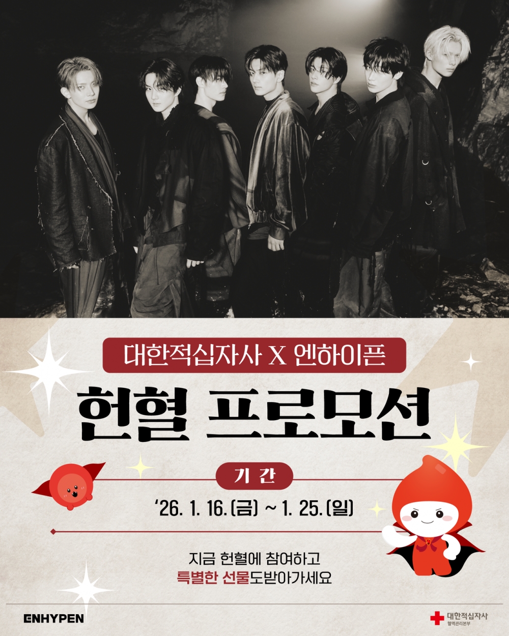 대한적십자사 혈액관리본부(본부장 권소영)는 빌리프랩과 나눔의 사회적 가치 실현을 위한 업무협약(MOU)을 체결하고, 소속 아티스트 엔하이픈(ENHYPEN)과 함께 진행한 헌혈 캠페인이 성황리에 종료되었다고 밝혔다.