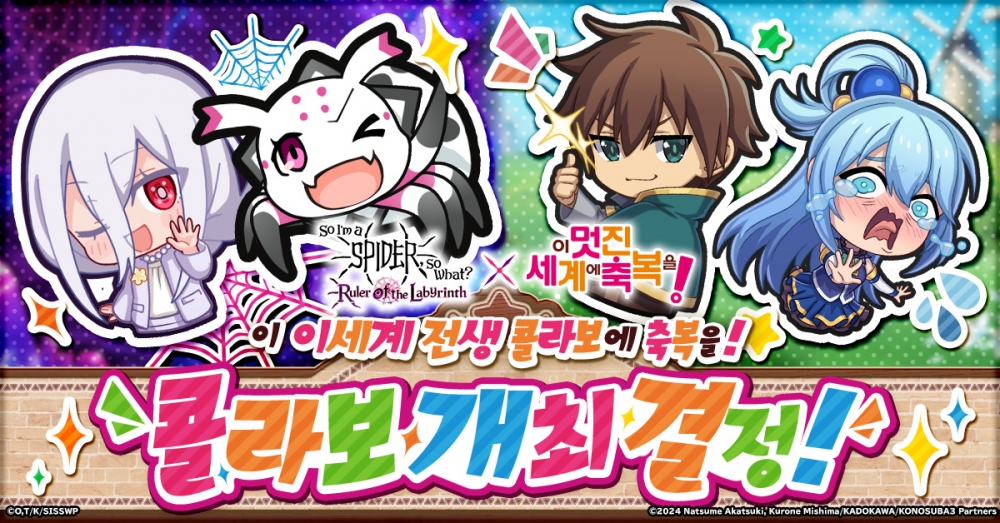 CTW 주식회사는 자사 게임 플랫폼 G123에서 서비스 중인 브라우저 게임 ‘거미입니다만, 문제라도? 미궁의 지배자’에서 애니메이션 ‘이 멋진 세계에 축복을!’과의 콜라보레이션 이벤트를 진행한다고 밝혔다.
