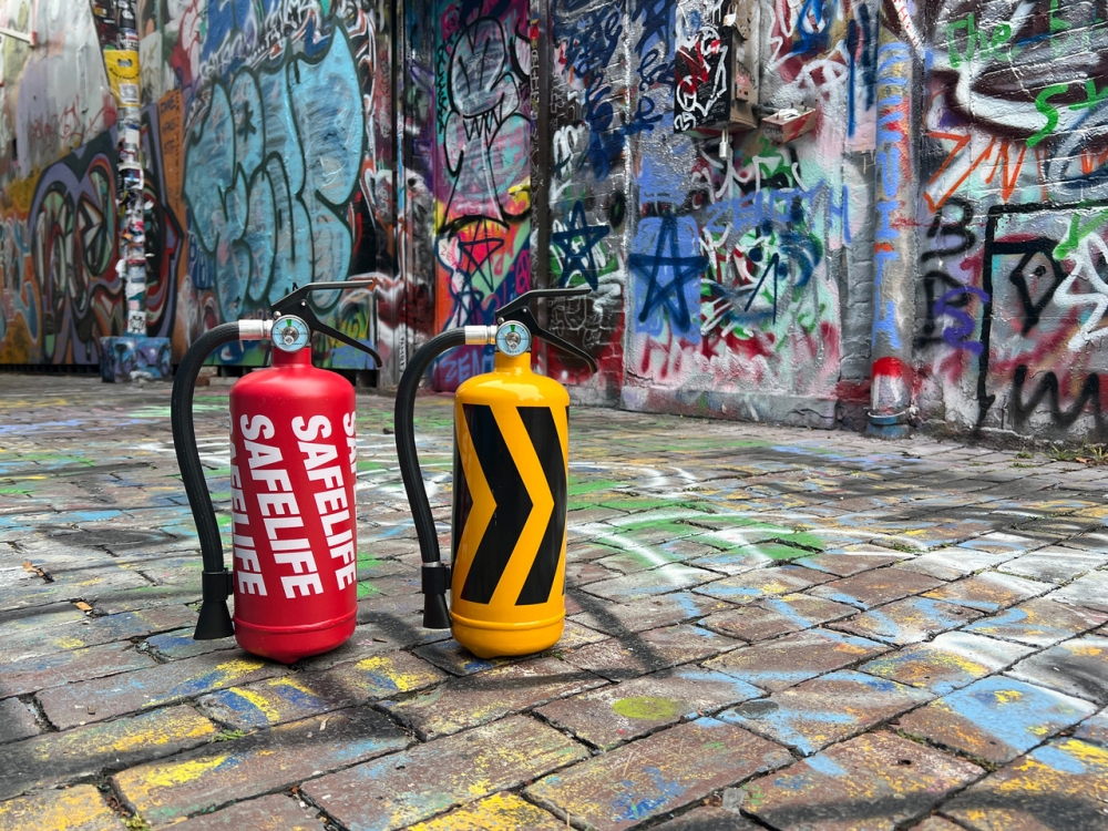 이번 신제품은 기존 소화기의 전형적인 디자인에서 벗어나, 산업 현장의 안전 표지에서 영감을 받은 '가드레일 옐로우(Guardrail Yellow)'와 클래식하면서도 강렬한 '시그니쳐 레드(Signature Red)' 두 가지 모델로 구성됐다. 특히 옐로우 모델은 검은색 헤링본 패턴을 적용해 시인성을 높이는 동시에 인테리어 오브제로서의 가치를 더했다.