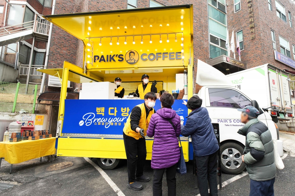 더본코리아는 구세군 강북종합사회복지관(관장 이문재)과 함께 강북구 내 독거 어르신과 도움이 필요한 이웃 500명에게 빽다방 음료 500잔과 베이커리 2종 세트 500개를 전달했다.