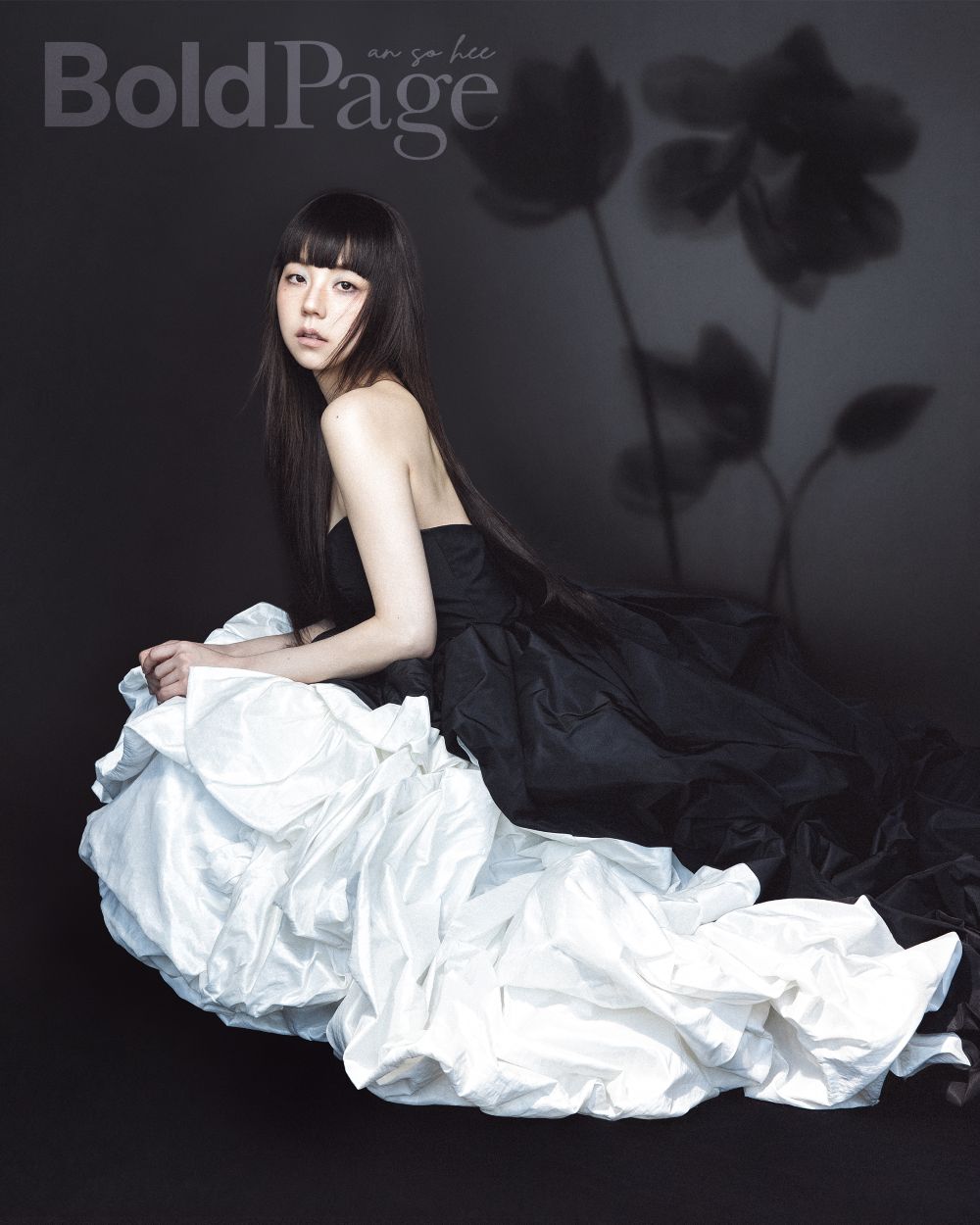 화보는 정적인 인물과 생화를 함께 배치해 고요한 긴장감과 섬세한 감정을 한 장면 안에 담아내는 데 집중했다. 고전적인 실루엣의 의상 위에 현대적인 스타일링을 더해 앤틱하면서도 새로운 감각을 동시에 담아냈다. 메쉬 소재의 롱 스커트로 풍성한 한복 실루엣을 현대적으로 재해석한 스타일링부터, 오간자 덧신을 활용한 감각적인 레이어링까지 다양한 룩을 통해 안소희 특유의 섬세한 분위기를 강조했다.