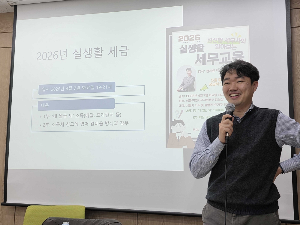 성동구1인가구지원센터(센터장 김요한)는 다가오는 5월 종합소득세 신고 기간을 앞두고 관내 1인가구를 위해 마련한 「2026 실생활 세무교육」을 지난 7일 성황리에 마무리했다고 밝혔다.