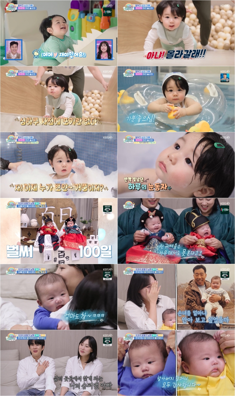 지난 4일(수) 방송된 ‘슈퍼맨이 돌아왔다’(연출 김영민, 이하 ‘슈돌’) 611회는 ‘언제 이렇게 컸니?’ 편으로 MC 김종민, 랄랄이 함께했다. 이날 방송에는 아빠 심형탁과 키즈풀카페 데이트를 나선 하루의 모습과 태어난 지 100일이 된 강단둥이남매의 모습이 담겼다. 쑥쑥 크는 아이들과 함께 ‘슈돌’은 전국 시청률 3.3%를 기록하며 시청률 순항을 이어가고 있다. (닐슨 코리아 기준)