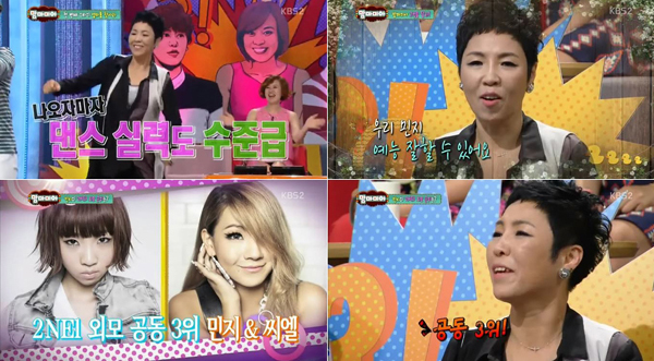 그는 딸에 대한 고마움을 드러내면서도 "공민지가 2NE1 가운데 외모 순위가 몇 위라고 생각하느냐?"는 질문에는 "공동 3위"라고 솔직하게 답해 스튜디오를 웃음바다로 만들었다. 공민지 역시 팀 내 자신의 외모 순위를 "공동 3위"라고 꼽았다.