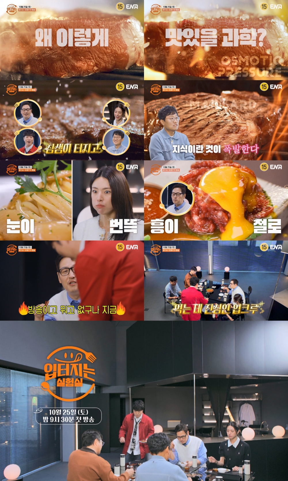 ENA ‘입 터지는 실험실’(연출 송가희)은 “왜 맛있을 과학?”이라는 주제로 입 터진 과학자들이 맛의 비밀을 실험하는, 입맛도, 수다도, 웃음도 터지는 세계 최초 과학 먹방 토크쇼다. 음식을 먹어 보고 그 맛을 설명하고 리액션하는 먹방 예능을 넘어, 과학적 ‘맛 가설’을 세우고 검증하는 과정을 통해 “왜 맛있을까?”를 지적으로 탐구하는 것이 차별화된 키포인트다. 특히 “어떻게 먹어야 더 맛있는가?”라는, 누구나 한 번쯤 생각해봤을 생활 밀착형 논쟁을 과학적으로 풀어내, 친근한 주제로 지적인 정보와 재미를 동시에 전한다.