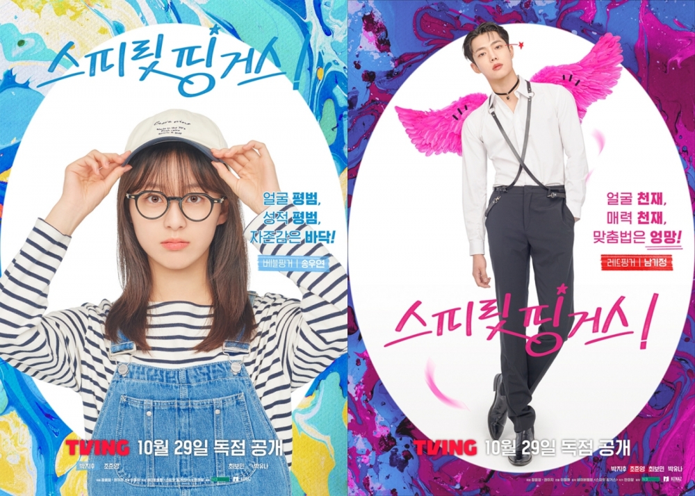 10월 29일(수) 티빙에서 독점 공개되는 ‘스피릿 핑거스’(연출 이철하 / 극본 정윤정·권이지 / 원작 한경찰 / 제작 ㈜넘버쓰리픽쳐스·MI·케나즈)는 ‘나만의 색을 찾아 떠난 청춘들의 알록달록 힐링 로맨스’를 그린 드라마로, 인기리에 완결된 동명의 네이버웹툰을 원작으로 한다. 이번에 공개된 캐릭터 포스터는 낯선 그림 모임 ‘스피릿 핑거스’에 발을 들이게 될 주인공 우연과, 그녀의 인생에 강렬한 색을 입혀줄 기정의 개성을 고스란히 담아내 시선을 사로잡는다.