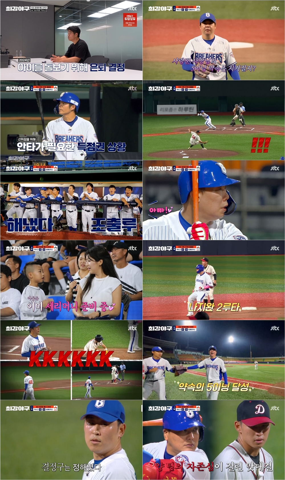 JTBC ‘최강야구’ 브레이커스의 고깃집 사장님 이현승이 미친 경기력으로 아내와 약속한 ‘5이닝 무실점’을 성공해 짜릿함을 선사했다.