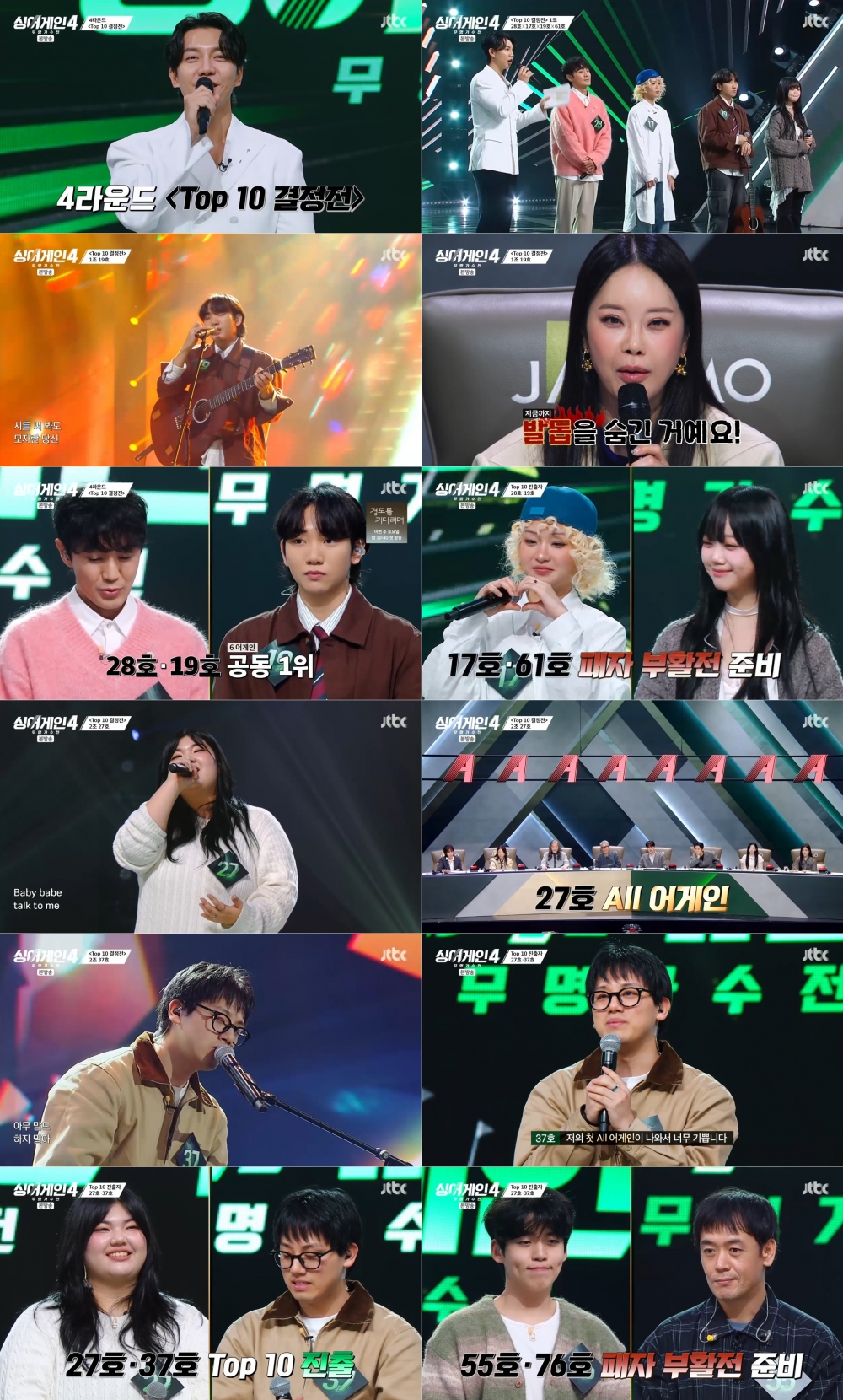 ‘또 다른 고막 남친’ 76호, ‘독보적 그루브’ 27호, ‘진한 울림’ 55호, ‘보컬 괴물’ 37호로 구성된 2조는 강력했다. 무엇보다 3라운드 라이벌 전에서 역대급 빅매치를 치른 27호와 37호의 리벤지 매치에 뜨거운 기대도 쏟아졌다. ‘죽음의 조’ 첫 순서는 76호였다. 작곡가가 아닌 가수로서의 ‘나’를 보여주기 위해 무대에 오른 76호는 폴킴의 ‘모든 날, 모든 순간(Every day Every Moment)’을 포근한 음색으로 소화했다. 그러나 심사위원단은 냉정했다. 코드 쿤스트는 “‘아 그 사람 생각난다’ 하는 포인트가 있었으면 좋았겠다”라고 말했고, 임재범과 규현 역시 호소력과 감정 전달력에 아쉬움을 표했다. 결과는 0 어게인이 나오며 모두를 충격에 빠트렸다. TOP 10 결정전인 만큼 더 엄격해진 심사 기준을 확인할 수 있는 순간이었다.