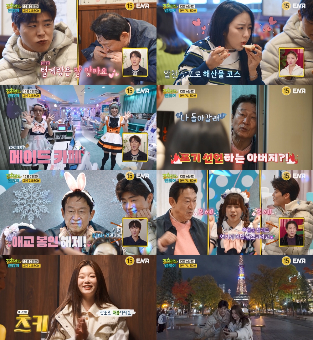 오늘(6일) 방송되는 ENA ‘길치라도 괜찮아’(연출 공대한) 7회에서는 ‘길치 가족’ 박지현-김응수-예원의 삿포로 가족 여행 2일 차가 공개된다. 현지인들도 오픈런한다는 ‘연 매출 140억’ 초대박 맛집을 찾아, 홋카이도산 털게찜부터 신선한 해산물이 가득 올라간 카이센동까지, 특급 식사를 즐길 예정. 보기만 해도 침샘을 자극하는 역대급 먹방에 기대감이 쏠리는 대목이다.