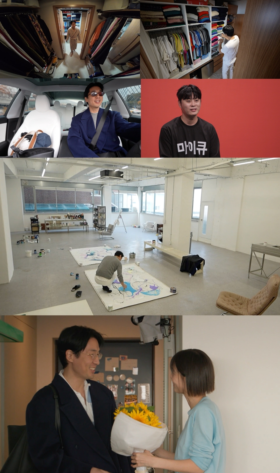 곧이어 도착한 작업실에서는 본격적인 ‘작가 모드’를 가동한다. 특히 ‘백바지’를 입고 캔버스 앞에 서는 파격 스타일링으로 눈길을 끈다. 마이큐는 옷에 얼룩이 묻는 것조차 개의치 않고 음악과 하나 되어 무아지경으로 붓질을 이어가는데. 아침의 다정했던 아빠와는 또 다른 ‘본업 천재’의 모습으로 시선을 사로잡는다.