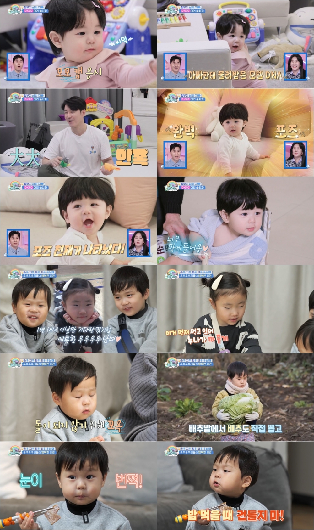 인내하고 협동한 보상은 달콤했다. 아이들은 직접 담근 김치를 고기와 함께 ‘전투적 먹방’을 즐겼다. 지우는 최애 음식인 뚝배기를 들고 국물을 흡입하며 연신 맛있다를 외쳤다. ‘우형제’는 편육의 매력에 빠졌다. 소꼬리찜, 족발 이어 편육까지 정복한 정우는 “삼촌 고기 좀 더주세요. 제발요” 간절하게 호소하면서 결국 혼자서 18개를 흡입했다.