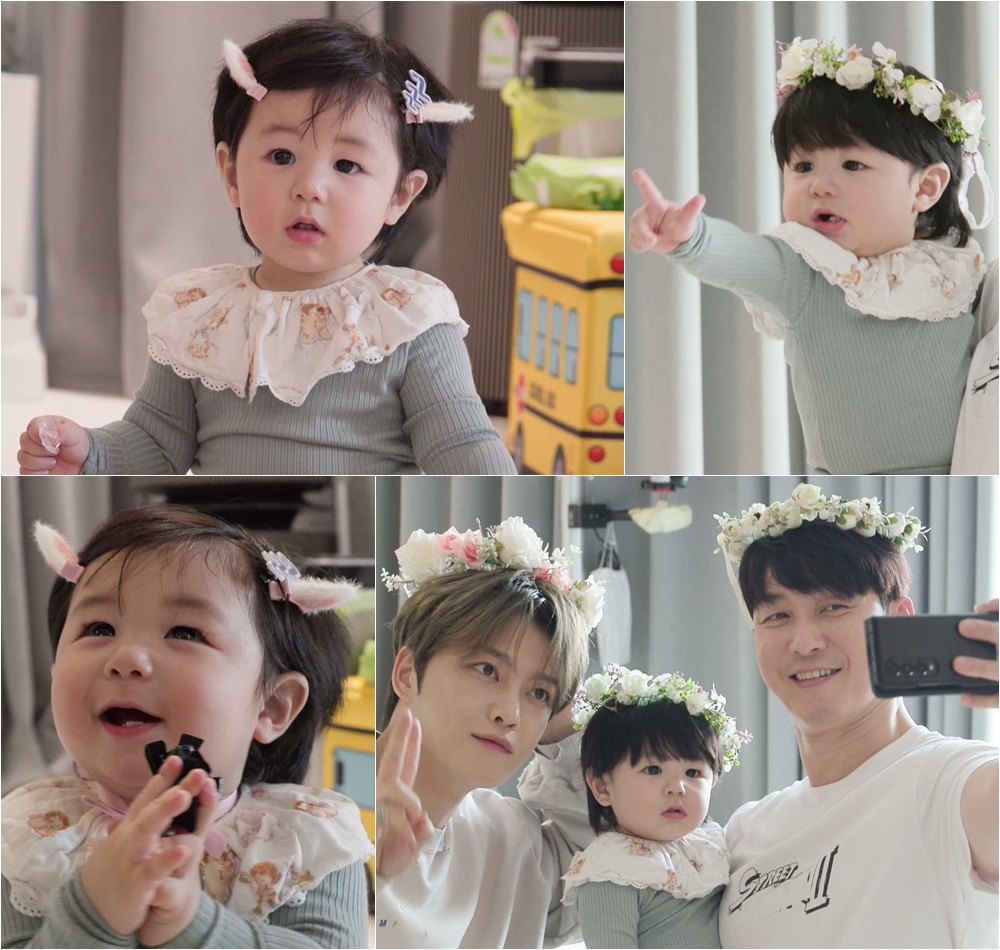 이 가운데, 하루가 화관을 쓰고 꽃미모를 뽐내 심쿵을 유발한다. 데뷔 때부터 ‘꽃미남 비주얼’로 유명한 김재중의 방문을 환영하기 위해 아빠 심형탁이 화관을 준비한 것. 하루는 화관을 쓰고 해사한 미소를 지어 아기 천사 비주얼로 이목을 집중시킨다.