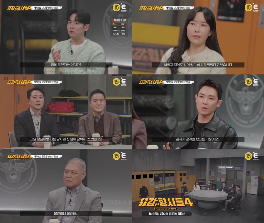 오는 16일 방송되는 티캐스트 E채널 ‘용감한 형사들4’(연출 이지선) 67회는 과학수사대(KCSI) 윤외출 전 경무관, 김진수 경감, 김나진 경위와 이송기, 김수원 형사가 출연해 수사 일지를 공개한다. 이번 방송에는 가수 한해와 배우 이준이 게스트로 다시 한번 출연해 활약을 펼칠 예정이다.