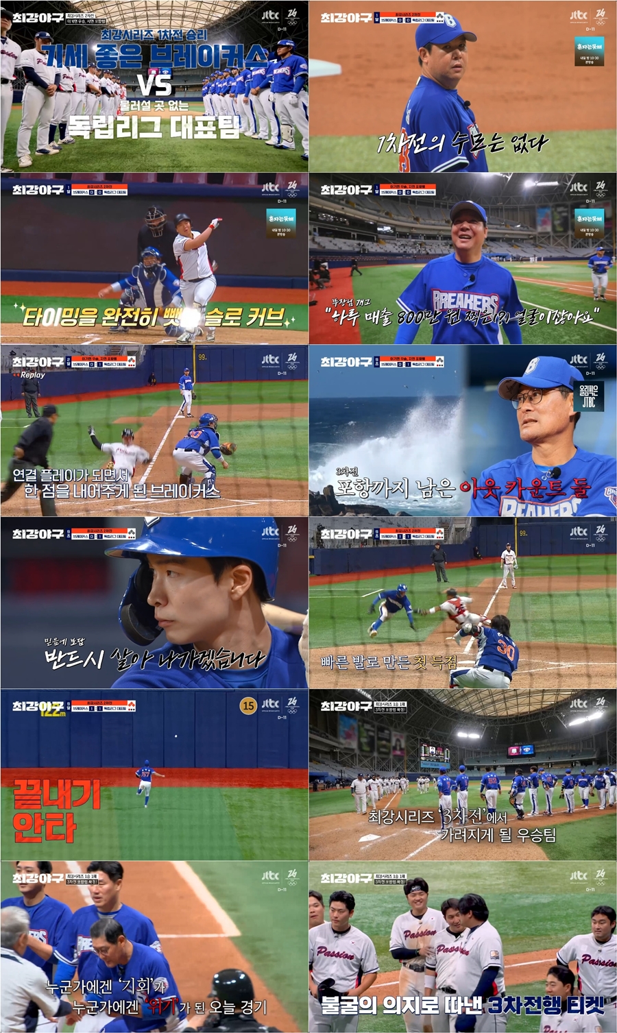 JTBC ‘최강야구’ 브레이커스가 역대급 피 말리는 접전 끝에 9회초 극적인 동점을 만들며 승리를 향한 집념을 보여줬지만, 9회말 끝내기 안타를 허용해 아쉽게 패했다.