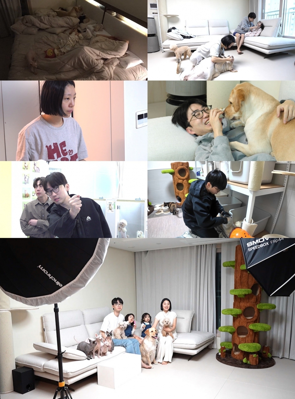 이강태의 하루는 아침부터 특별하다. 사람 4명과 동물 7마리가 뒤엉켜 잠든 커다란 침대에서 눈을 뜨자마자, 대환장 육아에 돌입하는 것. 사람 아기 2명과 강아지, 고양이 등 동물 아기 7마리의 ‘애·개·묘’ 동시 육아를 위해, 맛과 종류가 다양한 치약과 칫솔만 무려 9개를 동원한다고. 이어 사람 아기와 동물 아기를 각각 양치질 해주는 진귀한 풍경이 펼쳐진다. 또한 동물들과 사람 아기들이 자연스럽게 어울려 살아가기를 바라며, 집에서 자연주의 출산을 했다는 이강태 부부의 놀라운 사연까지 공개되며 참견인들의 입을 떡 벌어지게 만든다.