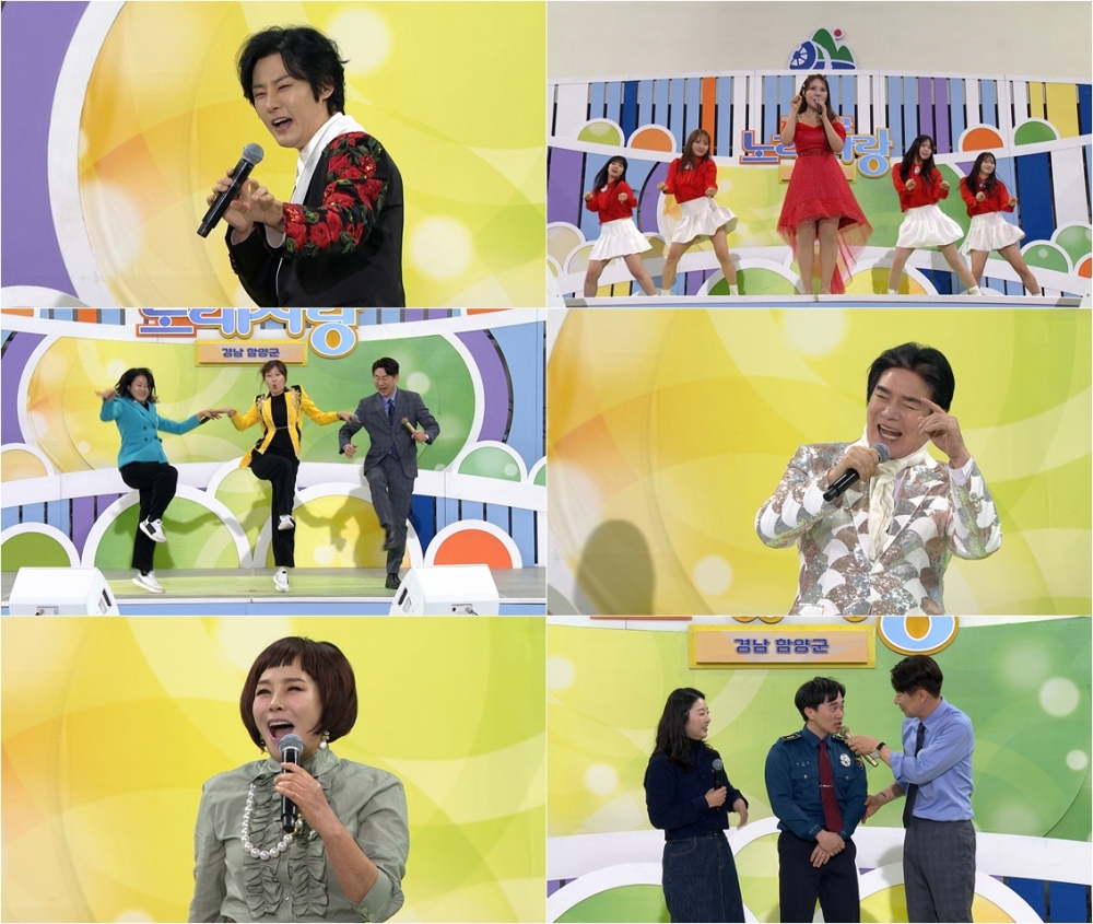 KBS 1TV ‘전국노래자랑’은 매주 일요일을 46년 동안 변함없이 지켜온 대국민 참여형 오디션 프로그램의 원조이자 국내 최고의 예능프로그램. 지난 주 방송된 2157회가 닐슨 코리아 전국 기준 6.2%로 동시간대 시청률 확고부동의 1위를 수성하며 국민 예능의 위상을 재확인시킨 바 있다. 오는 22일(일) 방송되는 '전국노래자랑' 2158회는 '경상남도 함양군' 편으로, 함양스포츠파크 체육관에 마련된 특설무대에서 본선에 오른 17개 팀이 역대급 끼의 대결을 펼칠 예정이다.