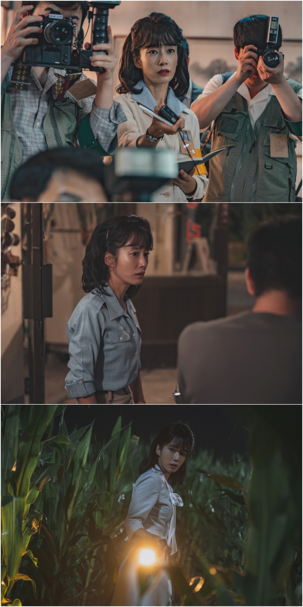 그런 가운데 곽선영의 캐릭터 ‘착붙’ 스틸이 공개돼 이목이 집중된다. 1988년 과거에서 튀어나온 듯한 레트로 스타일링부터 서지원 그 자체에 녹아든 눈빛까지 완벽한 변신으로 눈길을 끈다. 수많은 취재진이 모인 현장 속 작은 체구에도 커다란 존재감을 드러내는 ‘정의로운 기자’이자, 서울에서 좌천된 후 고향으로 돌아온 강태주를 누구보다 걱정하는 ‘의리의 절친’으로 활약할 전망. 한편, 앞서 공개된 메인 예고편에서 “내가 범인 잡을 수 있게 해줄 테니까 딱 기다려”라며 한밤중 옥수수밭 사이를 걷던 모습도 포착돼 궁금증을 더한다.