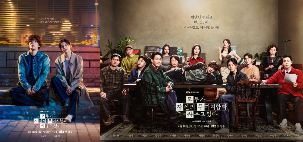 잘난 친구들 사이에서 혼자만 안 풀려 시기와 질투로 괴로워 미쳐버린 인간의 평화 찾기를 따라가는 JTBC 새 토일드라마 ‘모두가 자신의 무가치함과 싸우고 있다’(연출 차영훈, 극본 박해영, 제작 스튜디오 피닉스·SLL·스튜디오 플로우, 이하 ‘모자무싸’)가 오늘(18일) 밤 10시 40분, 대망의 첫 방송을 앞두고 있다. ‘동백꽃 필 무렵’, ‘웰컴투 삼달리’의 차영훈 감독과 ‘나의 아저씨’, ‘나의 해방일지’의 박해영 작가, 두 드라마 거장의 의기투합으로 이목이 집중된 상반기 최고 기대작이다. 이에 현대인의 보편적 감정인 ‘불안’을 키워드로, 무가치함이라는 적신호에 멈춰선 이들에게 초록불을 켜줄 ‘모자무싸’의 관전 포인트를 미리 살펴본다.